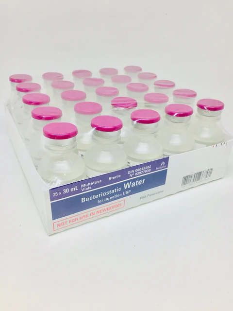 Authentic UK-held stock of Canadian Pfizer Hospira Sterile Water for solution mixing, trusted for peptide research and laboratory preparation.
